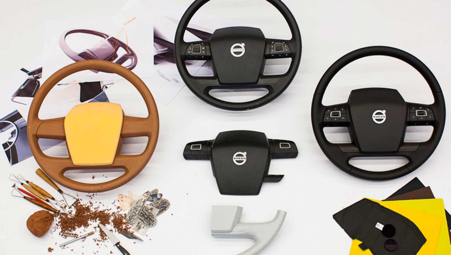 „To tradycyjna technika projektowania pozwalająca nam uchwycić esencję tego, co chcemy wyrazić" - mówi Asok George, główny projektant elementów zewnętrznych w Volvo Trucks. „W naszej branży jest szczególnie ważna, ponieważ tworzymy skomplikowany produkt, który często stanowi zarówno miejsce pracy, jak i dom". Nie tylko musimy brać pod uwagę wymagania techniczne i prawne, ale także wykraczać poza wymagania klientów. To trudne zadanie, a ponieważ projektanci myślą obrazami, używamy inspirujących obrazów stymulujących naszą kreatywność".