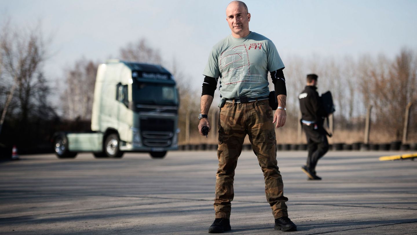 - Jazda na dwóch kołach samochodem ciężarowym jest jedną najtrudniejszych ewolucji. Podczas jazdy muszę być całkowicie skoncentrowany, ponieważ równowagę utrzymuję, tak naprawdę, balansując swoim ciałem - działam na wyczucie, dosłownie - mówi Walter Melis.