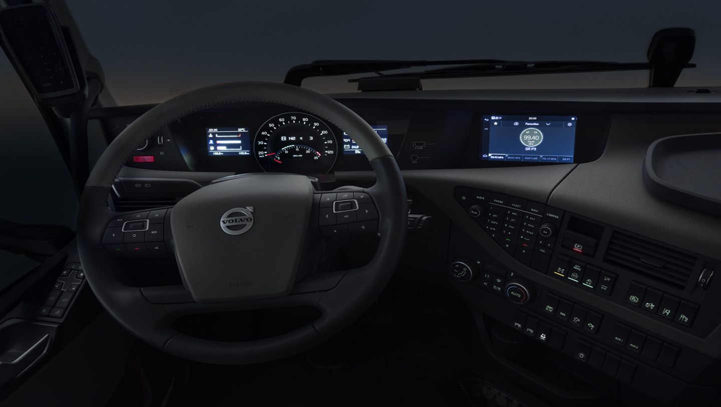 Dzięki scaleniu pokładowych systemów: audio, nawigacyjnego i zarządzania flotą, Volvo Trucks opracowało łatwy w obsłudze, w pełni zintegrowany system, który może być kontrolowany za pośrednictwem wyświetlacza dotykowego, przycisków na kole kierownicy lub głosowo.