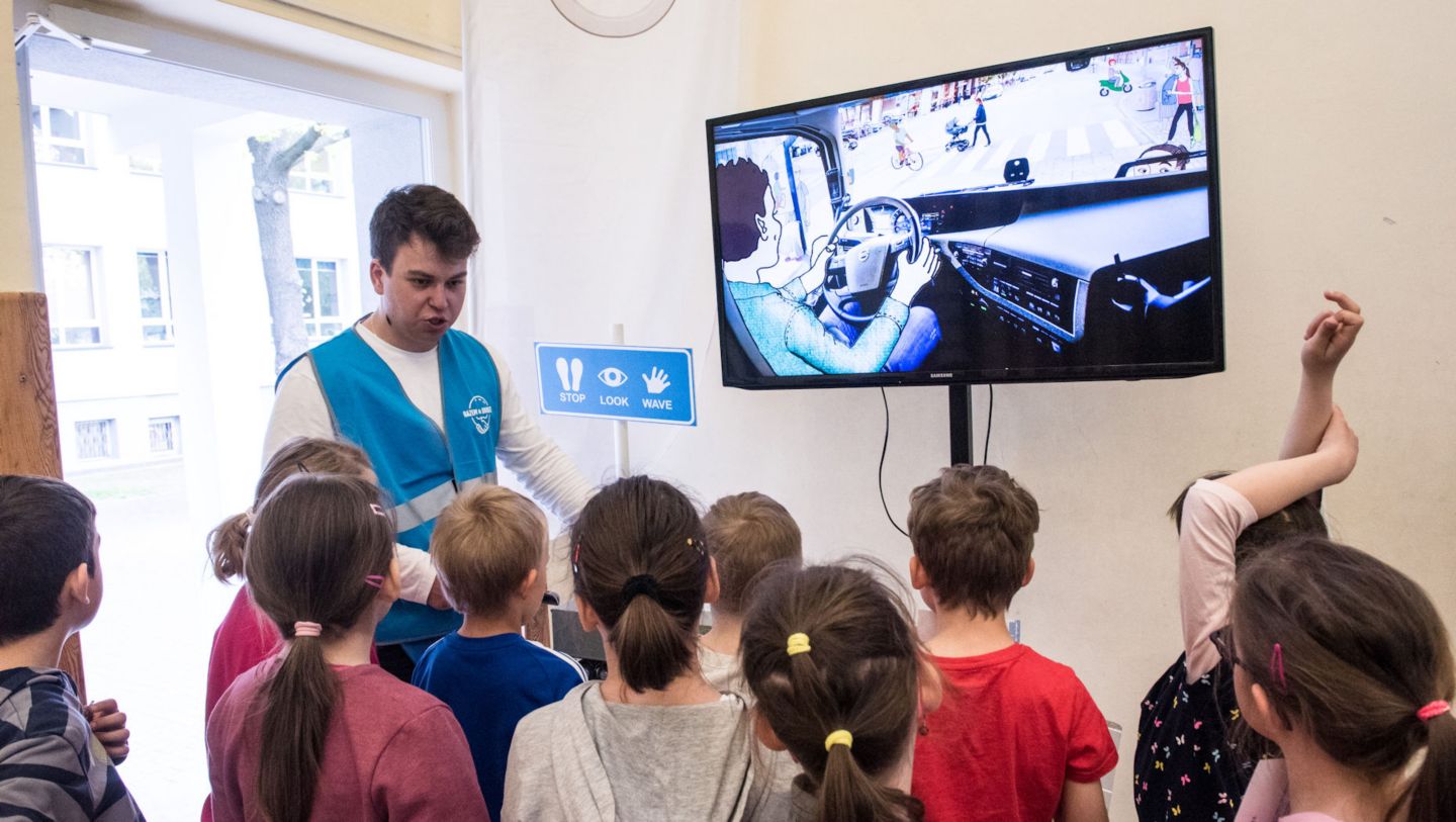 Największe wrażenie na dzieciach zrobiła strefa ”Stop.Look.Wave.,” którą przygotowało Volvo Trucks. Tutaj uczniowie mogli się przekonać m.in., jak wygląda martwe pole wokół samochodu ciężarowego. Najpierw dowiadywali się za pomocą specjalnych slajdów, na czym polega zasada „Stop.Look.Wave”, czyli jak powinien zachować się pieszy na ulicy, po której porusza się pojazd ciężarowy: „Zatrzymaj się” (spójrz w lewo, w prawo i jeszcze raz w lewo), „Spójrz” na kierowcę (upewnij się, że kierowca cię widzi) i „Pomachaj” (przejdź przez ulicę dopiero, gdy kierowca odwzajemni twój gest).